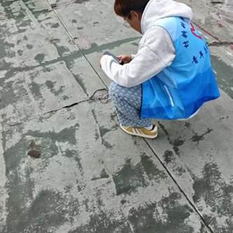 活动伊始,志愿者们10人一组分为两队,明确分工、协同配合。每组设立记录员与摄影师岗位,各司其职:记录员系统梳理材料的位置、类型、功能及优缺点;摄影师则聚焦细节,捕捉材料在实际应用中的真实状态,确保每一份数据“有图有真相”。