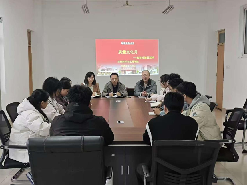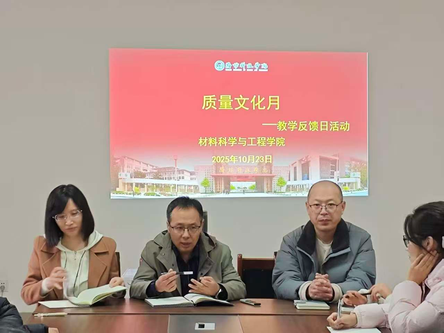 为扎实推进质量文化建设,精准对接教学实际需求,2025年10月23日,材料科学与工程学院“质量文化月——教学反馈日”活动在学院会议室举行。教学科老师闫友军、付耀美、赵新凯与学生代表共同参与,旨在通过深入交流,收集教学反馈、破解教学难题。